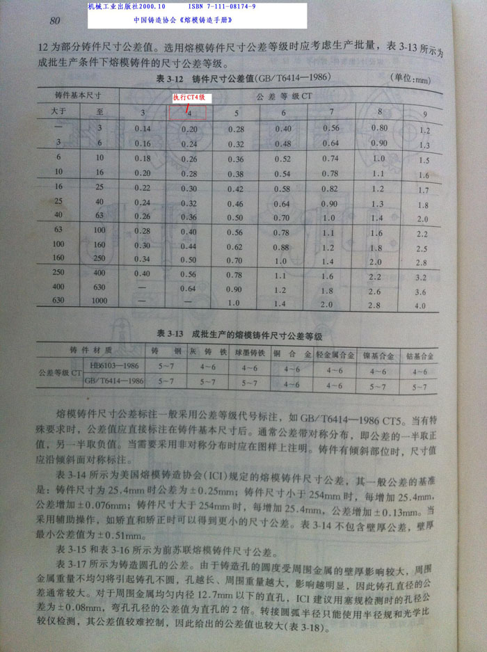 硅溶膠熔模鑄件尺寸公差CT4級(jí)